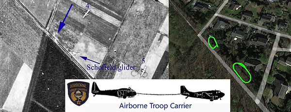 With help of an aerial photo, a possible location was found. The aerial photo covered a larger area, and several gliders could be located. The left image shows the Schofield glider marked.